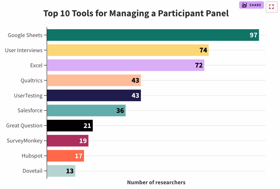 Our research found that 29.2% of research teams use a dedicated CRM or survey tool for participant management: