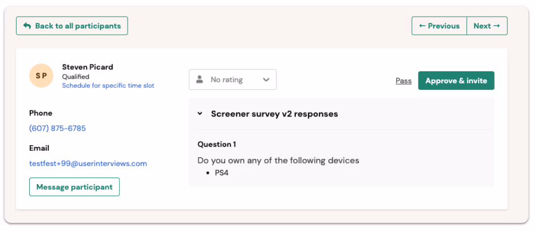 Using the new previous/next buttons, you can now navigate between participants’ profiles with a single click. This is great news for time-constrained researchers who need to consider more participants in less time.