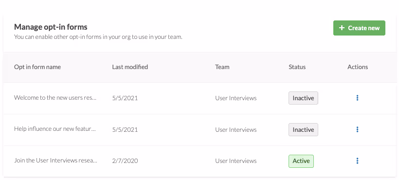 A win for teams with multiple brands, products, or those who just want ask different questions to different groups. Your team can make and activate as many opt-in forms as you want!