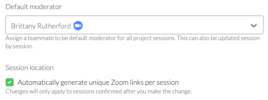 To make it easy, we created the role of default and session moderators so you can parse up sessions however works for your team. Any collaborator with a synced Zoom account can be the default moderator for a project or a session moderator. Set the default moderator at the project level, and any session without a session moderator automatically gets assigned to them.