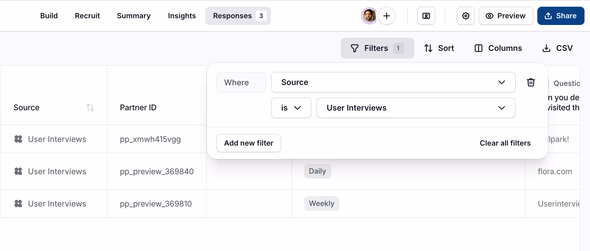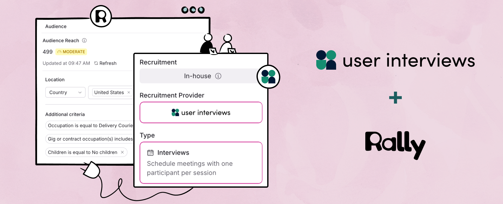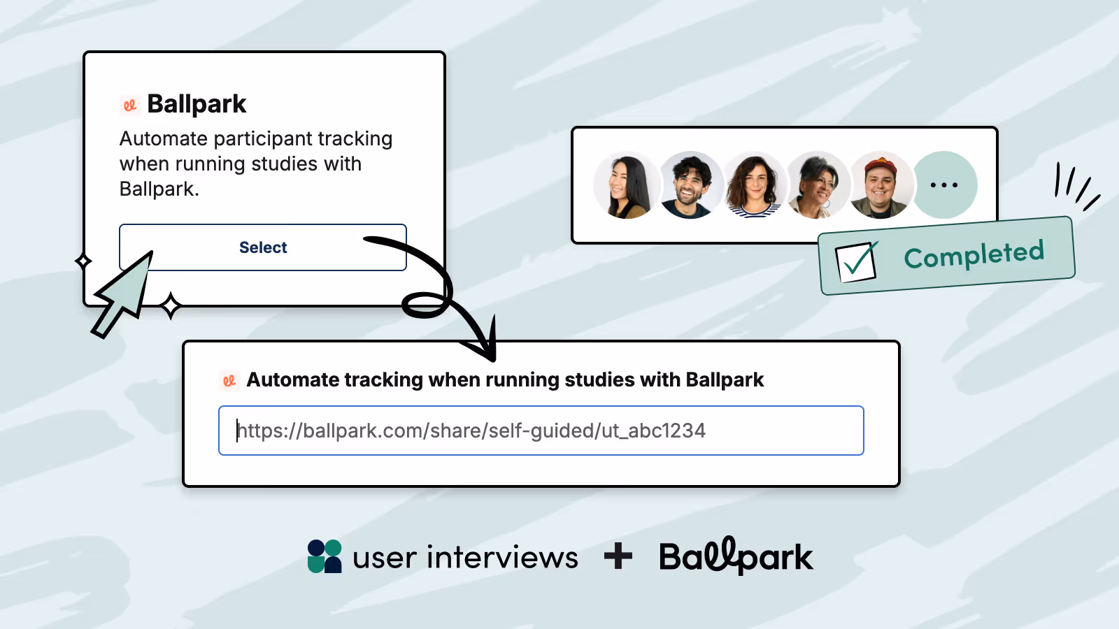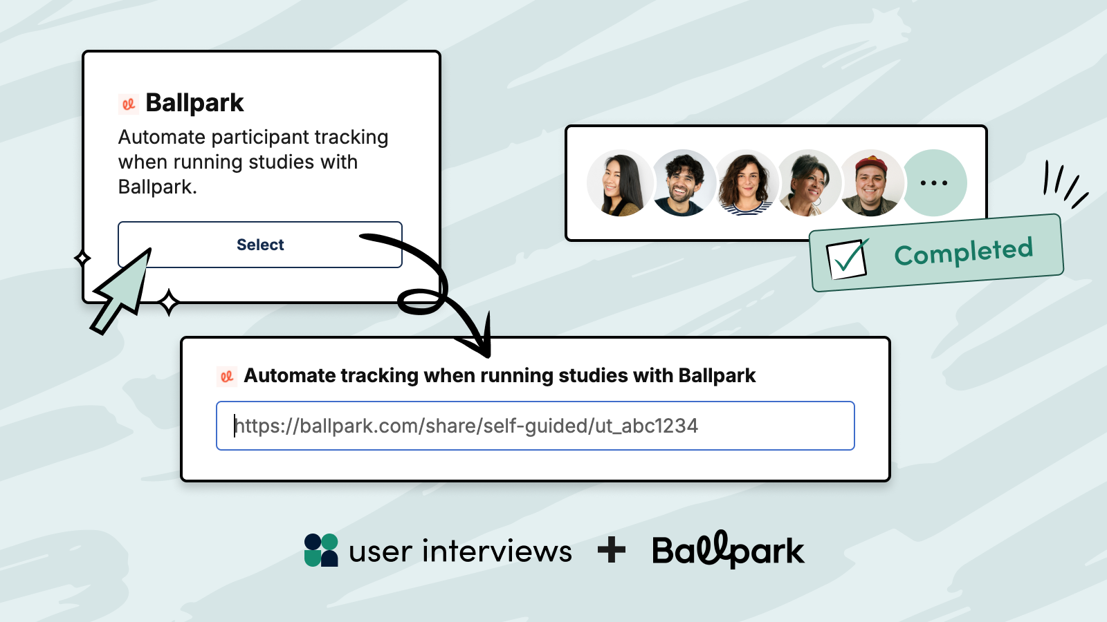 Running quick-turn studies in Ballpark just got easier. With our new Ballpark integration, you can now recruit high-quality participants from User Interviews, and send them straight into any Ballpark study. Use the integration to source survey respondents, usability testers, to interview participants, and more.