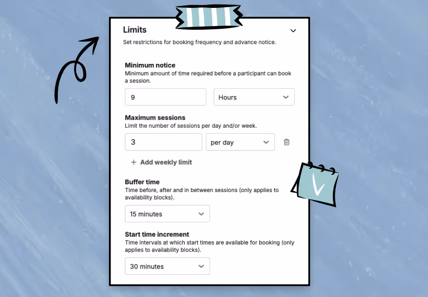 We just launched calendar availability blocks to make it easier to manage your schedule ✨ Instead of adding individual (often multiple) session blocks to your calendar, you can now create custom blocks of time when you’re available—simply click and drag on your calendar.