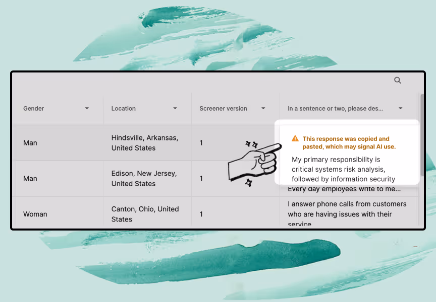 We now highlight copy-pasted screener responses across all Recruit projects! We’ve heard a lot of researcher concern around AI-generated free text responses lately, and have been actively working to improve fraud prevention on our platform.