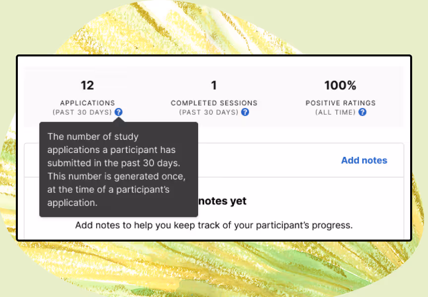 We've added new quality signals to offer more insight on suspicious participant behavior. This includes activity data such as seeing when a participant joined, what time they applied to your study, previous applications & reviews, and more. We hope these updates give you that extra insight to confidently approve the best candidates for your studies.