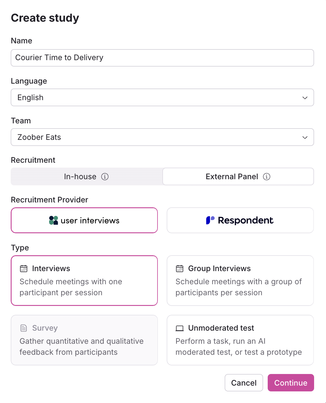 With this integration, we’re bringing User Interviews’ participant recruitment directly into the Rally platform. Teams can now recruit from our vast 6M+ participant network as they launch studies in Rally — no extra tools, no context switching.