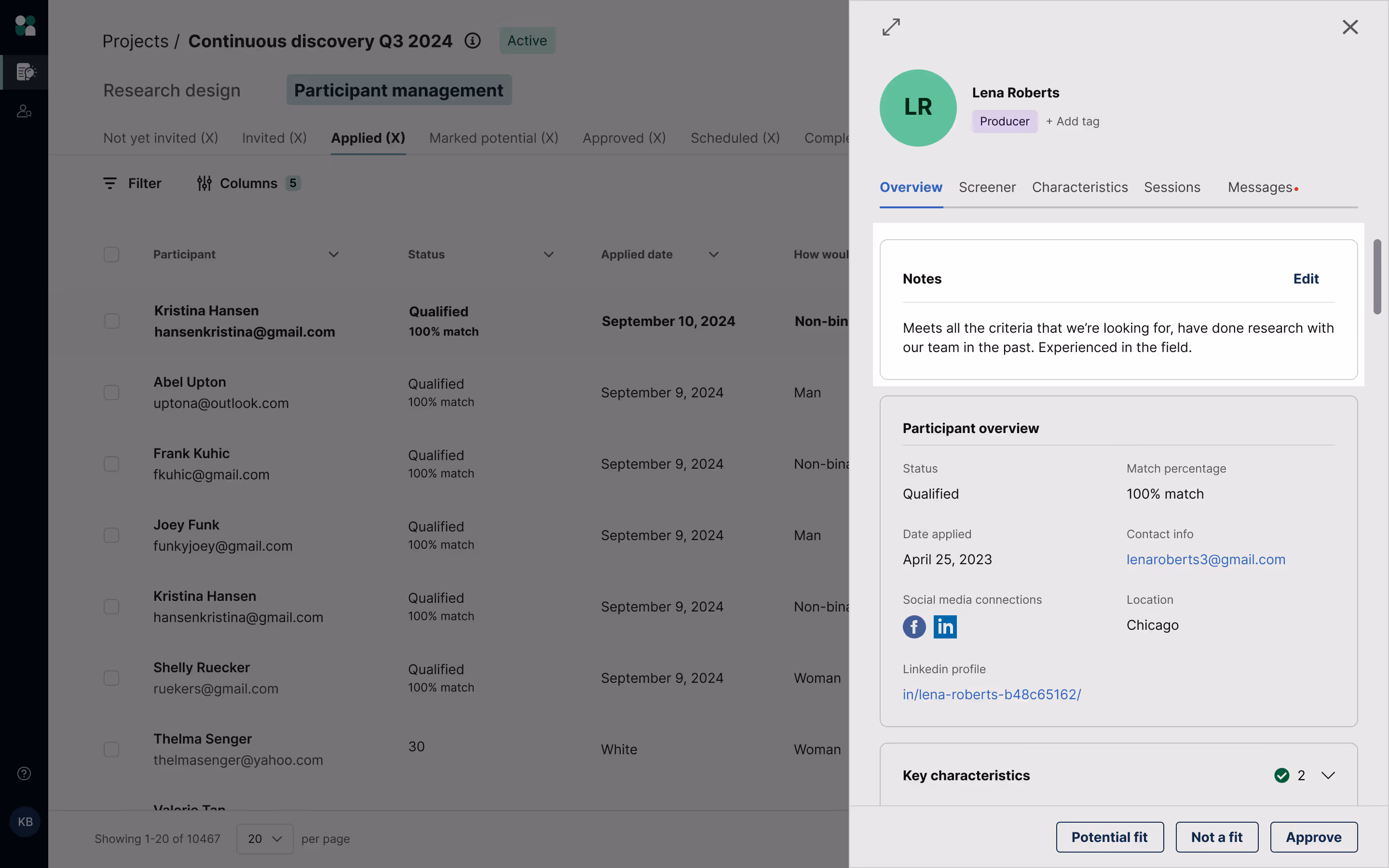 You can mark participants with “Potential fit” status for those who may be good fits for your study, but need further consideration before approving.