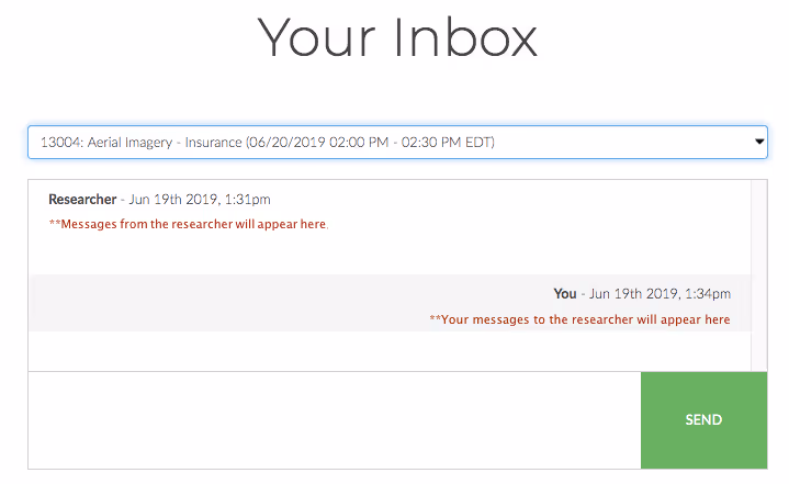 - You'll receive an email (and text if you opted in) notification when you have new message from a researcher. You must reply through the Messages tool!