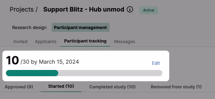 - On the top of the page, you'll see a progress bar showing how many participants have completed the task, and their deadline for doing so.