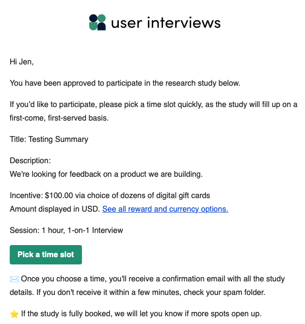 If a participant clicks, "pick a time slot" and the study is already full, then they will receive the following message.