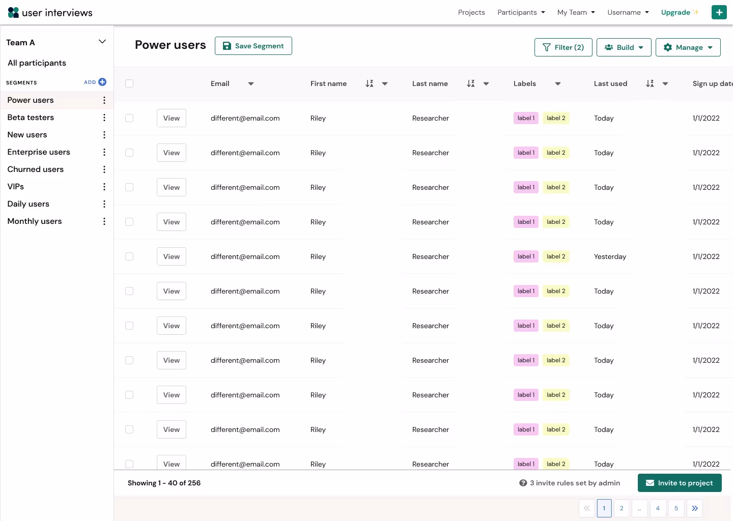Yes, everyone on your team can view all segments and invite participants from them to their projects. Note that participants can be included in more than one segment.