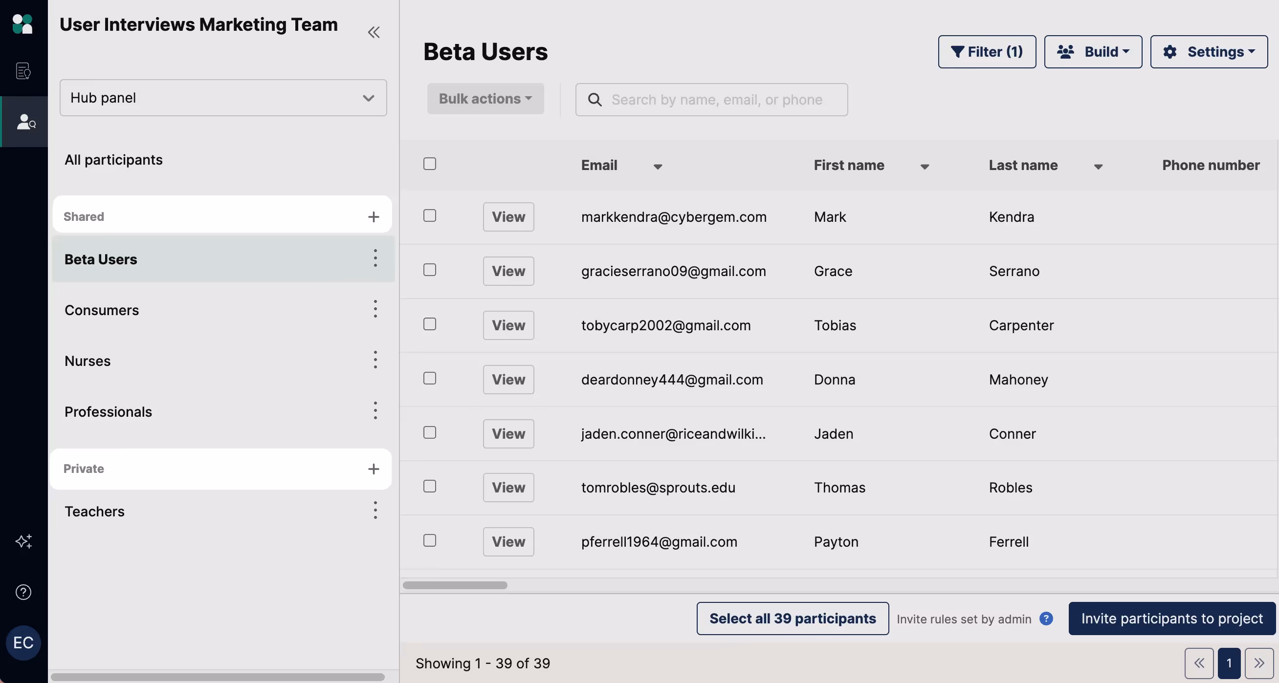 Can other people on my team invite participants from my segment?
