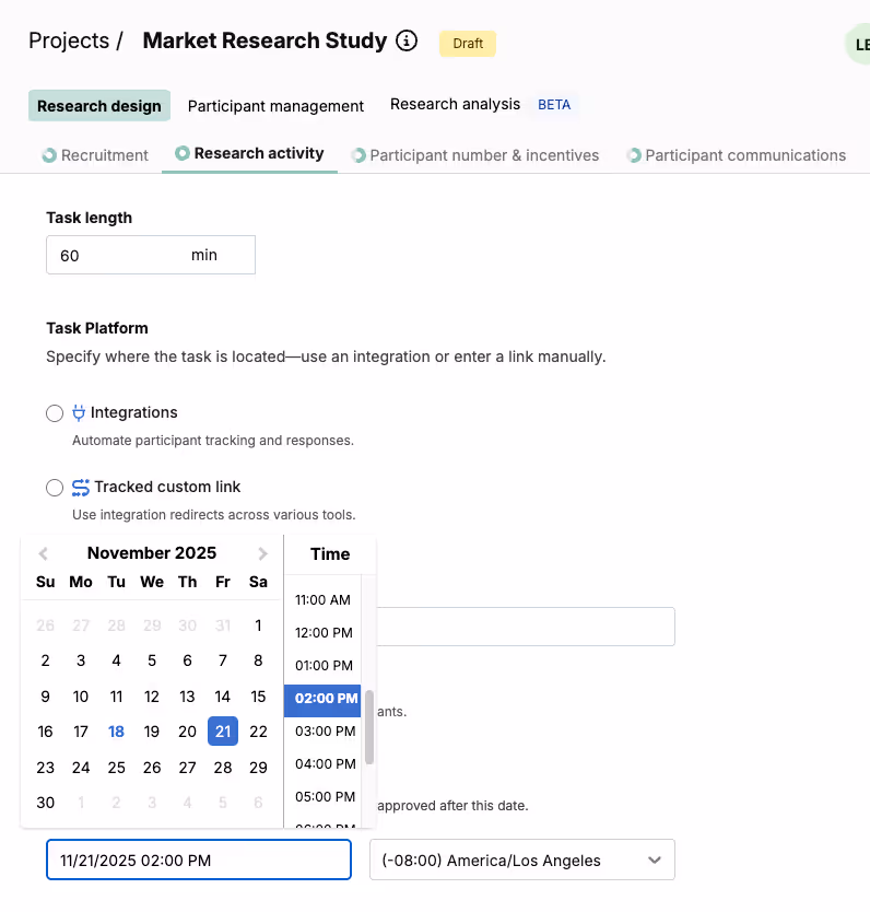 This article walks through some best practices for setting availability on your research calendar. To learn about how to automate scheduling for your projects through calendar integrations, visit our automated scheduling support guide.