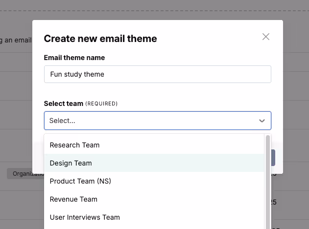 Email themes let you customize the look and feel of invitation emails sent to participants. You can create themes at the organization level or for specific teams, and set organization or team level defaults that automatically apply to new projects and opt-in forms.