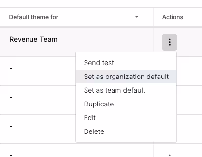 Organization default: Owners can set any theme as the organization-wide default. This theme will apply to all teams that don't have their own team default set.