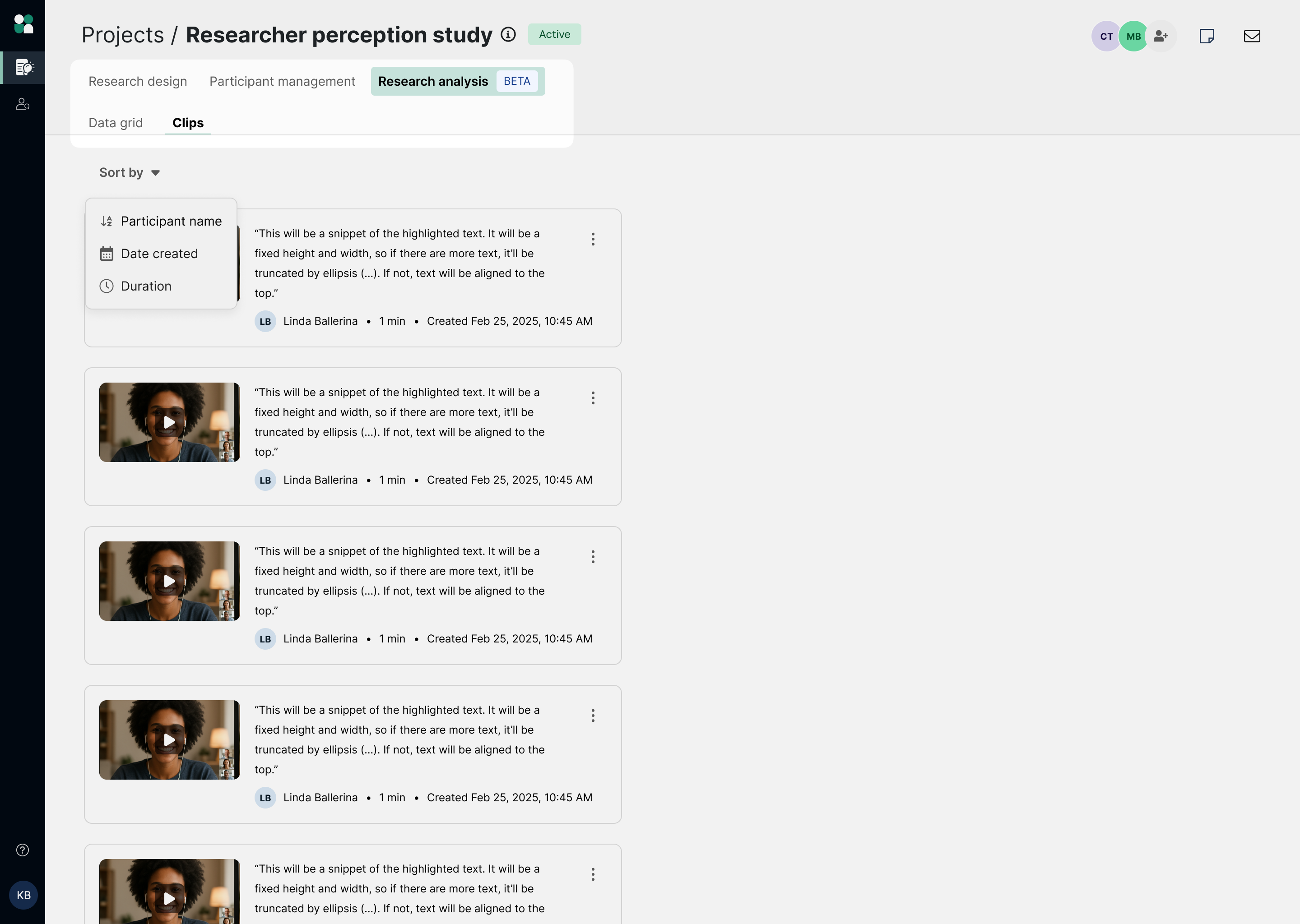 Use Clips to capture and share key video moments from your recorded sessions with stakeholders. Unlike generic screen recordings or manually trimmed videos, clips in User Interviews are: