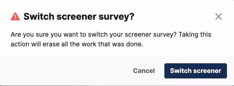 3. You'll be prompted to confirm you'd like to switch the screener. The new screener will override any current screener questions of logic.